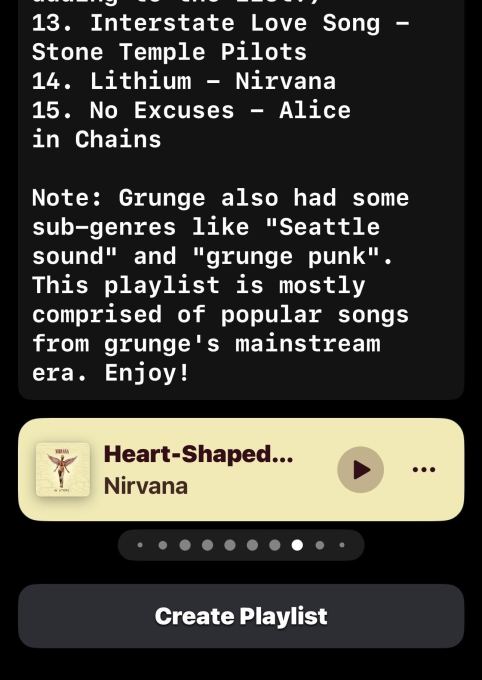Përtej ruajtjes së këngëve individuale në bibliotekën tuaj të muzikës Apple, Petey ofron gjithashtu mundësinë për të krijuar një listë dëgjimi. Me një trokitje të butonit “Krijo listën e luajtjes”, përdoruesit mund t’i japin një emër listës së dëgjimit të ndërtuar me AI, më pas ta hapin atë në aplikacionin e Apple Music dhe të fillojnë të dëgjojnë.