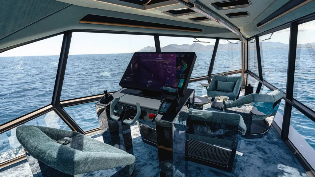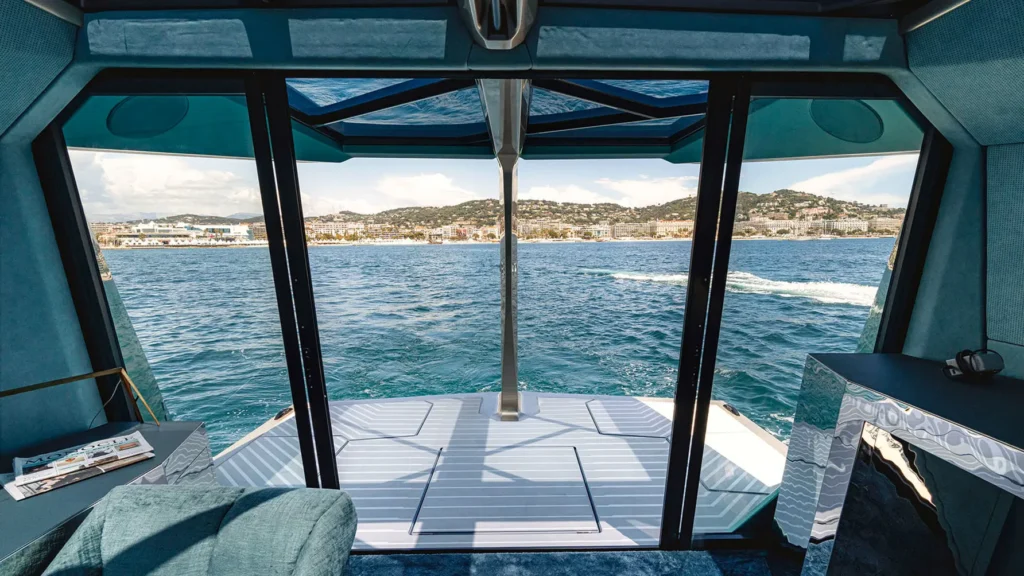 Aq shumë si një sallë pritjeje, ai ka edhe qilima, gjashtë karrige rrotulluese 360 gradë dhe tableta individuale brenda mundësive të krahut. Në mes të kuvertës, stacioni i komandës ka kontrolle të stilit iDrive, kontroll zanor dhe një ekran me prekje 32 inç me rezolucion 6k. E përkryer për të parë skedën e Kanës 2023.