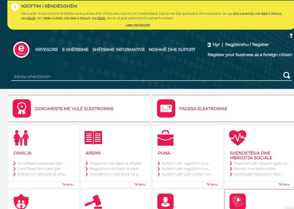 Portali i marrjes së shërbimeve shtetërore për qytetarët, “e-albania” do të jetë jashtë funksionit në ditët në vijim.