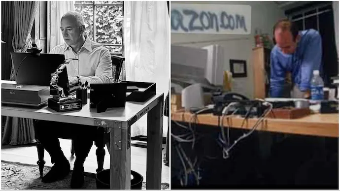 Pse? Është një nga tavolinat e para që zotëronte Amazon. Kur Bezos punësoi punonjësit e parë të startup-it, ata kishin nevojë për tavolina. Tavolinat ishin të shtrenjta. Përtej rrugës kishte një dyqan Home Depot shtëpiake. Tavolina shtëpiake të bëra nga dyer të lira? Shumë më lirë.