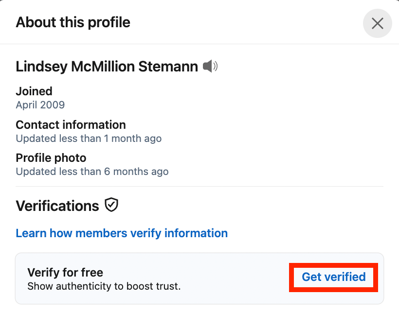 Në kohën e publikimit, anëtarët e verifikuar shënohen me një distinktiv të vogël gri pranë emrave të tyre brenda profileve të tyre. Ju gjithashtu mund të klikoni në distinktiv për të parë më shumë informacion rreth llojit dhe mënyrës së verifikimit.