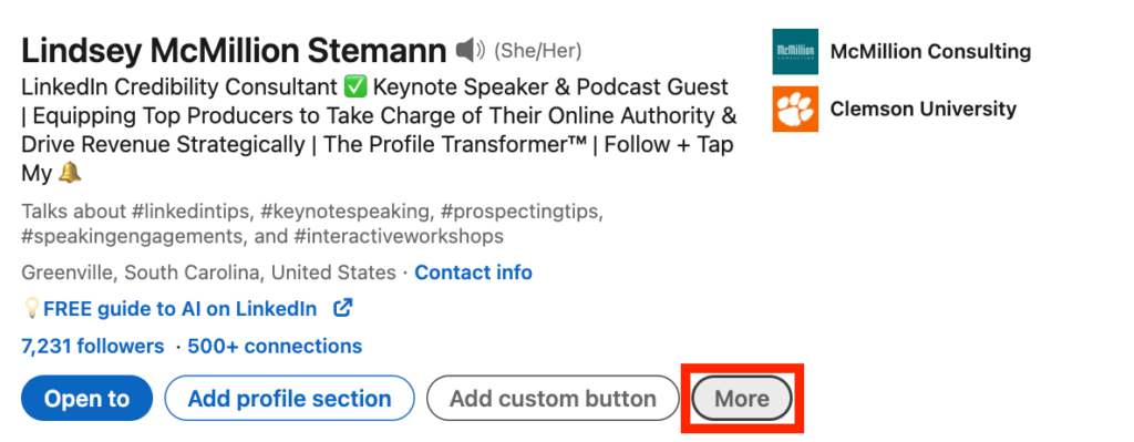 - Nga brenda profilit tuaj në LinkedIn, zgjidhni butonin Më shumë.