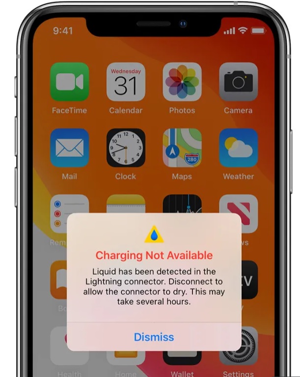 Nëse aparatin tuaj iPhone e lini në karikim gjatë kohës që uji nuk ka dalë tërësisht nga pajisja, mund të dëmtoni përgjithmonë baterinë ose të shkaktoni dëmtime të tjera.