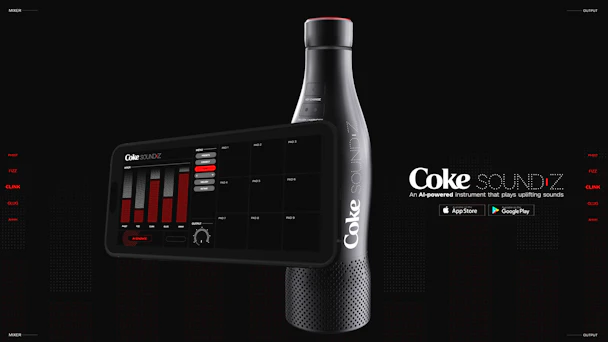 Coca-Cola vazhdon të gjejë aplikacione të reja për AI gjeneruese pasi teknologjia mbetet një fokus i botës së marketingut dhe teknologjisë. Instrumenti Coke SoundZ bazohet në një fushatë të mëparshme të përqendruar në muzikë, duke mbështetur produktin e tij Zero Sugar, i cili përdori inteligjencën artificiale për t’i kthyer imazhet e pijeve në tipografi të personalizuar.