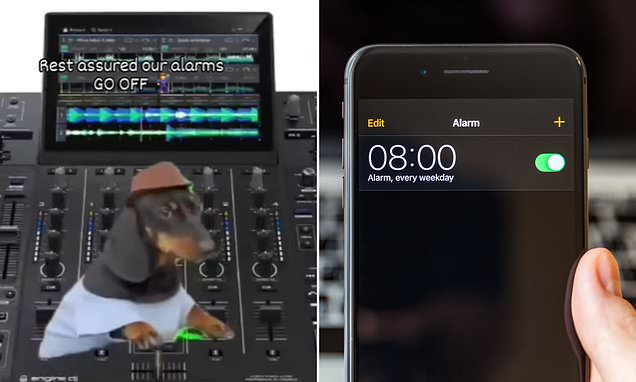 “Të jeni të sigurt që alarmet tona FUNKSIONOJNË”, postoi në një video të një dachshund duke luajtur me një mikser DJ.