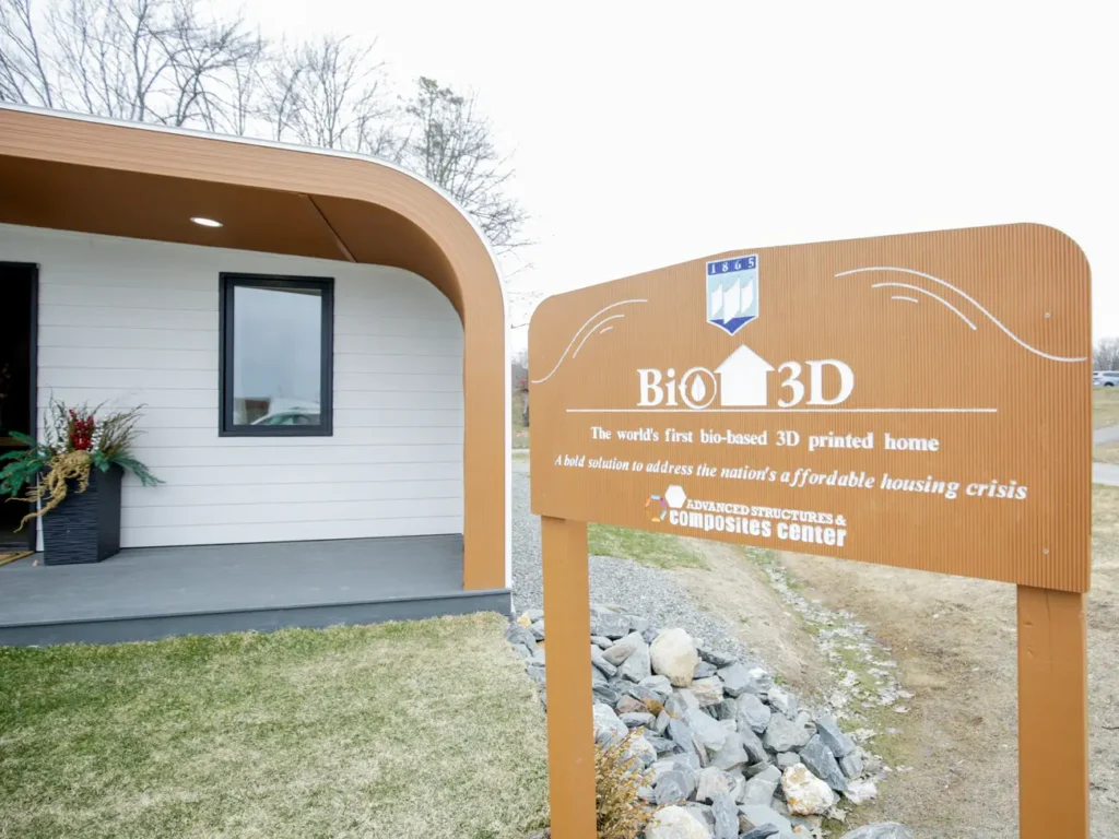 Shtëpia e parë ne botë e printuar në 3D u ndërtua nga Qendra e Strukturave dhe Kompoziteve të Avancuara të Universitetit të Maine (University of Maine’s Advanced Structures and Composites Center.).