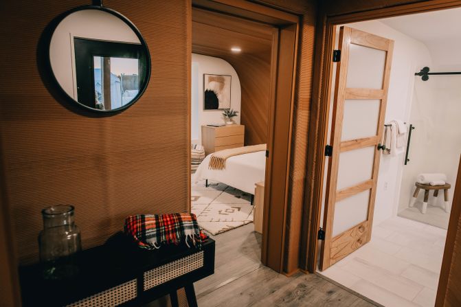 Dyshemeja, tavani dhe muret e saj janë printuar në 3D duke përdorur materiale të qëndrueshme, të riciklueshme me bazë bio.
