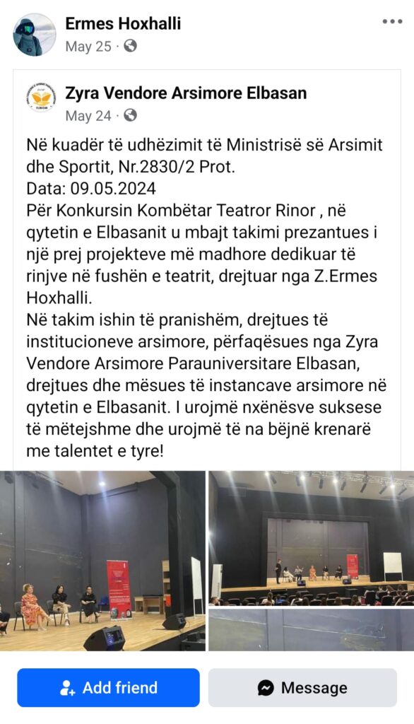 Ai është Ermes Hoxhalli, djali nga Devolli që është pak ose aspak aktiv në rrjetet sociale ku prezantohet si aktor, gazetar, poet, etj.