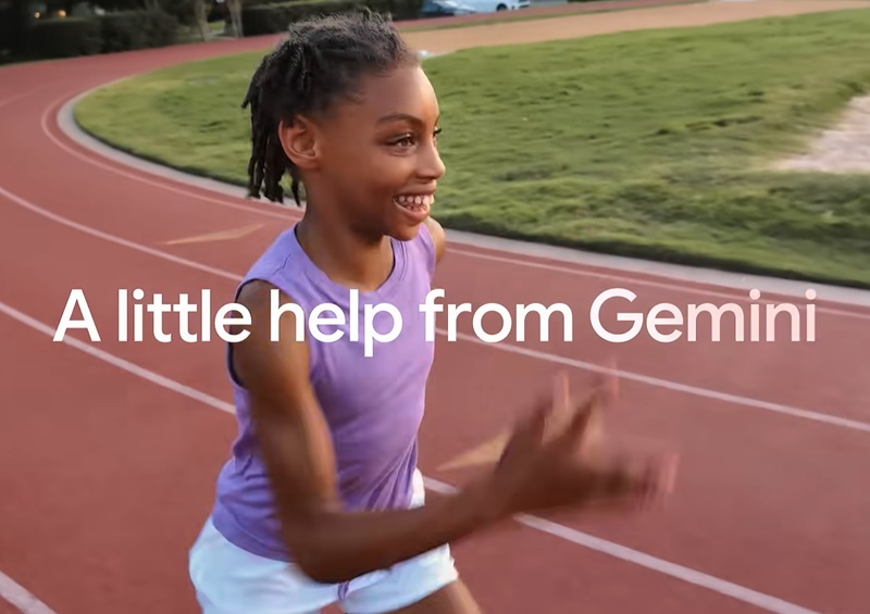 Në reklamën 60 sekondëshe, e cila është ende e disponueshme në YouTube, një baba përdor Gemini për t’i shkruar një letër yllit olimpik Sydney McLaughlin-Levron, në emër të vajzës së tij të vogël,.