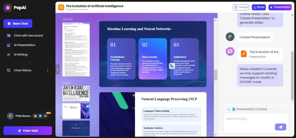 PopAI është një platformë fleksibile për prezantime biznesi, raporte arsimore dhe materiale edukative. Ju mund të përshtatni gjatësinë e tekstit, numrin e faqeve dhe audiencën e synuar. Megjithëse ndërfaqja është e ngadaltë, përmbajtja dhe vizualet janë të dobishme për projekte të ndryshme.