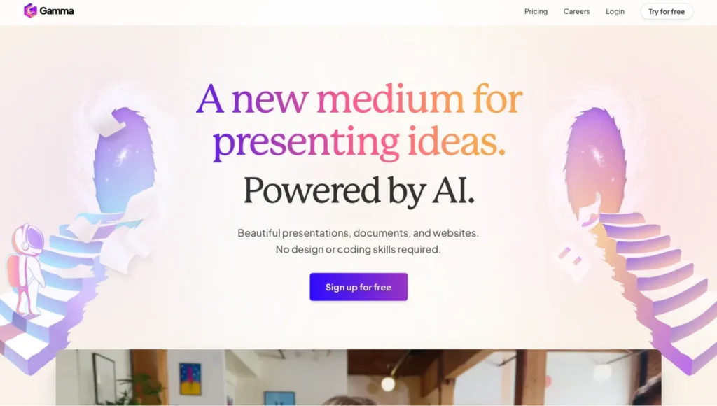 Gamma AI është platforma më e mirë për të ndërtuar prezantime në 2024. Ajo krijon prezantime të bukura me përmbajtje të detajuar, imazhe dhe të dhëna në vetëm pak minuta. Mjafton të regjistroheni falas dhe të shkruani një temë të qartë. Gamma ofron gjithashtu një bibliotekë të madhe shabllonesh, mundësi për të eksportuar në PDF ose PPT, dhe integrim të plotë me Google Slides.