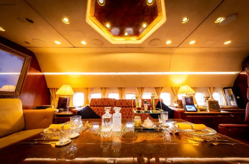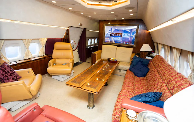 Ndërsa avioni nuk ka më krahë apo motorë, të gjitha funksionet e tjera funksionojnë, me pjesën më të madhe të restaurimit elektrik që është përfunduar nga vetë Palmer. Avioni privat përfshin dy dhoma gjumi dyshe, si dhe shkallët ajrore të punës, ndriçimin, tre tualete, dush, kuzhinë dhe frigorifer.