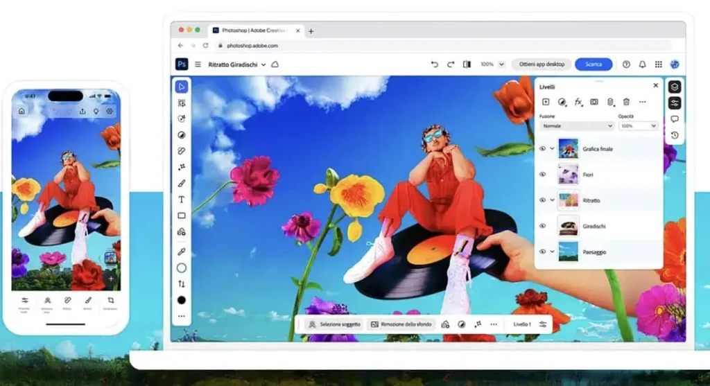 Përveç kësaj, përdoruesit mund të vazhdojnë lehtësisht aty ku e lanë me skedarët që sinkronizohen automatikisht ndërmjet iPhone dhe uebit, dhe në ueb mund të kenë qasje në funksione më të fuqishme si “Camera Raw filter, forma, efekte shtresash, Quick Actions, funksione generative AI si Generate Similar, Reference Image dhe të tjera”.