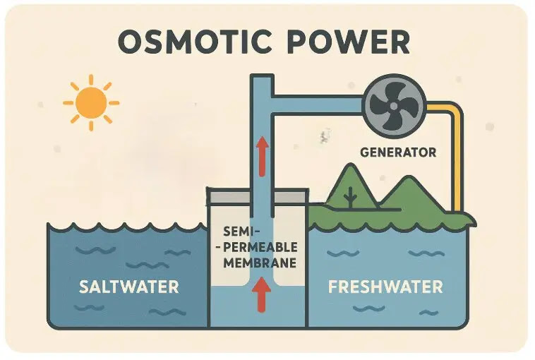 Energjia “osmotike”, e njohur edhe si “energji blu”, prodhohet nga përzierja e ujit të ëmbël me ujin e kripur përmes një membrane gjysmëpërshkuese. Ky proces gjeneron presion që lëviz turbina për të prodhuar elektricitet. Me këtë sistem, Japonia synon të prodhojë rreth 880 mijë kilovat orë në vit, energji e mjaftueshme për të furnizuar afërsisht 300 familje. Fillimisht, centrali do të përdoret për të siguruar energji për impiantin e desalinizimit të Fukuokës, që furnizon me ujë të pijshëm zonat përreth.