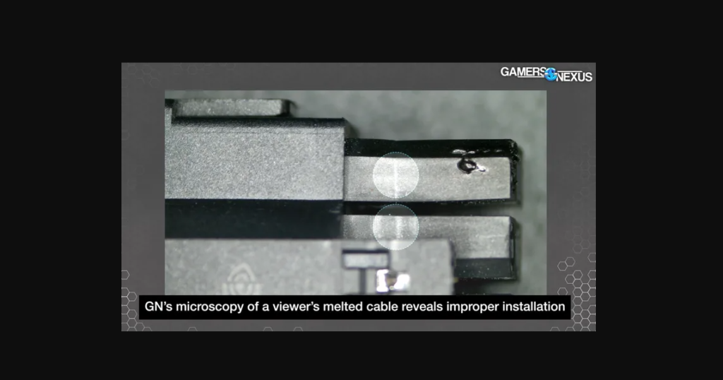 Sidoqoftë, GamersNexus, një prizë që respektohet në komunitetin e ndërtimit të PC për testimin e tij rigoroz, në thelb doli në të njëjtin përfundim në fillim të kësaj jave. Një video e postuar të mërkurën nga priza, e cila inspektoi përshtatësit e dëmtuar të dërguar nga shikuesit dhe bëri një testim dhe raportim të gjerë për këtë çështje, tregoi se lidhësit kishin linja konsumimi, duke nënkuptuar se ata nuk ishin futur plotësisht në vend. GamersNexus madje thotë se disa njerëz duket se kanë humbur një lidhje të plotë me disa milimetra. Videoja e saj tregon se një lidhje e lirshme mund të shkaktojë ngrohjen dramatike të prizës, nëse do të lidhej dobët dhe do të anohej në një kënd.