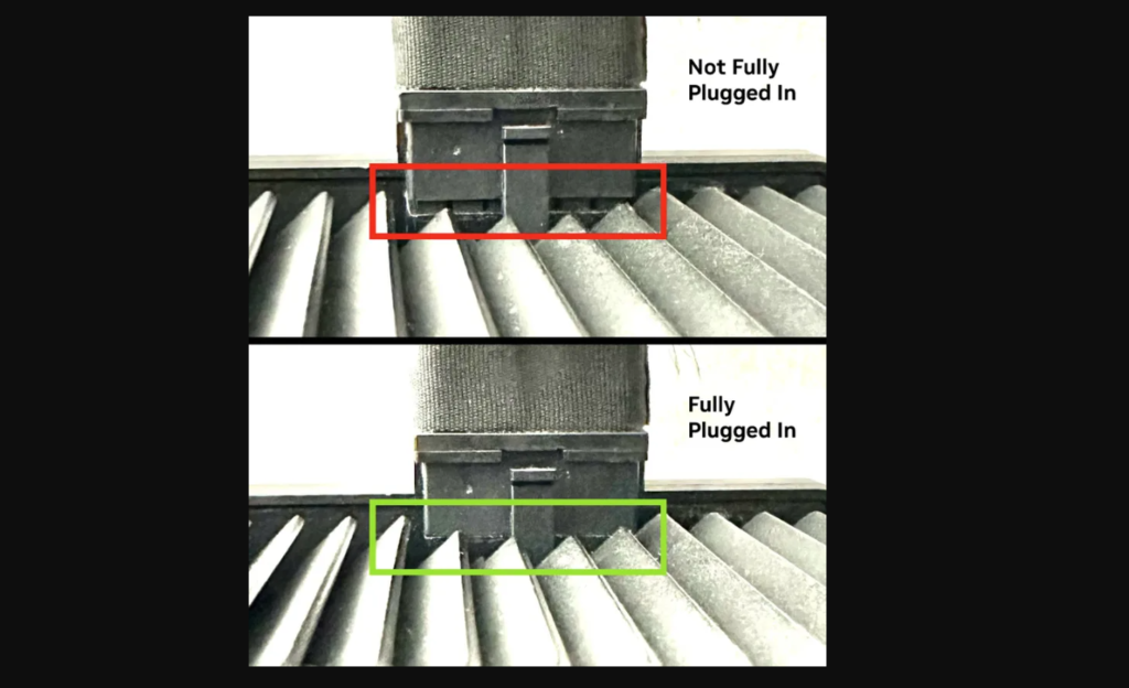 Postimi i Nvidia përfshin një fotografi të asaj se si duket lidhësi kur nuk është plotësisht i kyçur në prizë dhe duket shumë më e lehtë të humbasësh sesa diçka që është jashtë plot 2 mm dhe mbahet në një kënd (mundësisht për shkak të tërheqjes shumë të ngushtë të kabllove prapa gjatë instalimit). Do të ishte edhe më e lehtë për të humbur me një kartë RTX 4090 të palës së tretë në vend të versionit Nvidia të paraqitur në imazhet më poshtë.