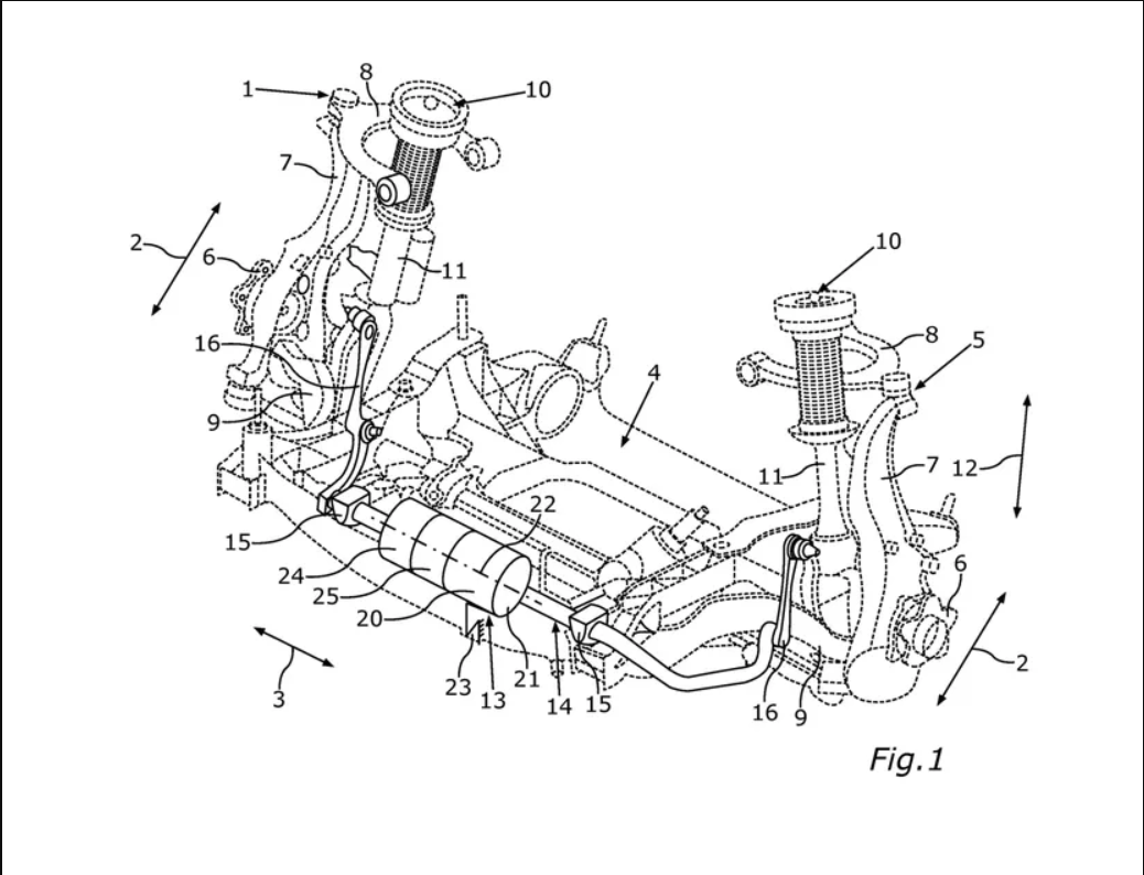Faqja e lajmeve e entuziastëve të makinave CarBuzz zbuloi një dokument nga zyra kombëtare gjermane e patentave që zbulon një dizajn të ri të pezullimit, i cili, nëse zhvillohet dhe vihet në prodhim, do të lejojë një makinë të mbledhë energjinë elektrike të prodhuar nga gunga në rrugë.
