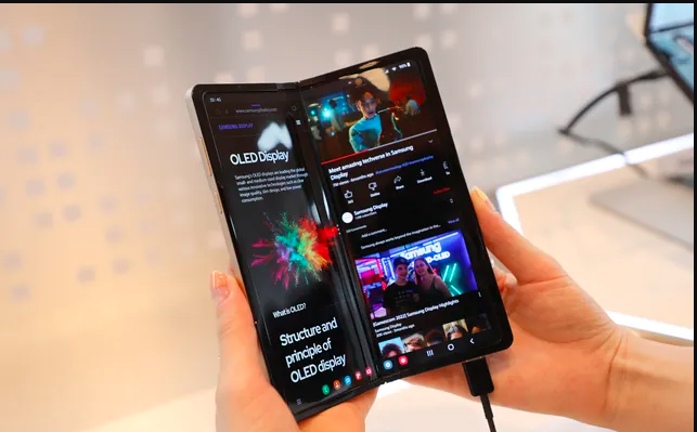 Samsung Display, filiali që prodhon ekranet e kompanisë, tregoi prototipin e ri të ekranit dhe menteshën në CES 2023. Ekrani “Flex In & Out” mund të rrotullohet 360 gradë, që do të thotë se mund të paloset brenda dhe jashtë, tha zëdhënësi i kompanisë John Lucas. The Verge në një email.